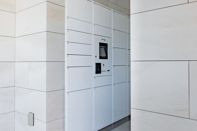 大廳設置連網管理的多功能投遞箱,可安全收受郵件與包裹。